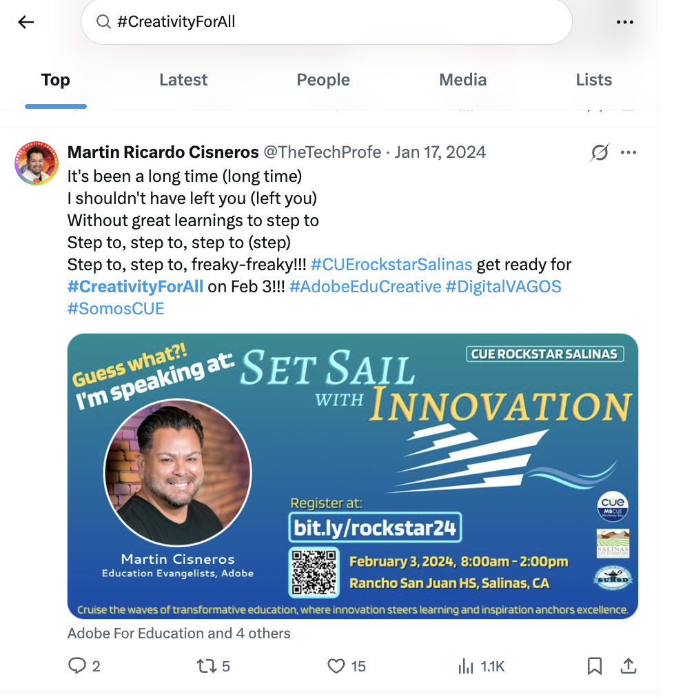 Artists and performers can use Twitter hashtags to share new releases, performances, or dance challenges.